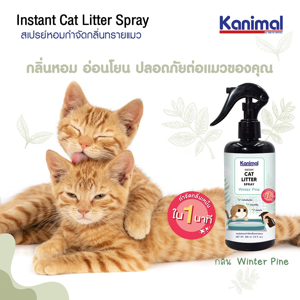 Kanimal Cat Litter Spray สเปรย์หอมกำจัดกลิ่นเหม็น และยับยั้งเชื้อแบคทีเรีย สำหรับดับกลิ่นไม่พึงประสงค์จากปัสสาวะ และอุจจาระ สามารถใช้ได้กับทรายแมวทุกชนิด เช่น ทรายเบนโทไนท์ ภูเขาไฟ ไม้สนธรรมชาติ คริสตัล เต้าหู้ ซังข้าวโพด ฯลฯอีกทั้งสามารถใช้ฉีดบนของใช้ ของเล่น เบาะนอนน้องแมว คอนโดแมว ตระกร้า กรงแมว หรือกระเป๋าใส่สัตว์เลี้ยงได้ด้วย