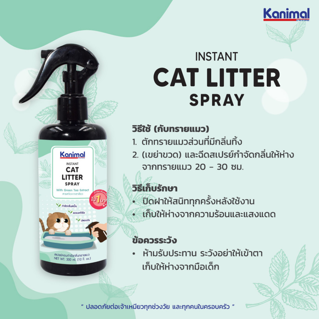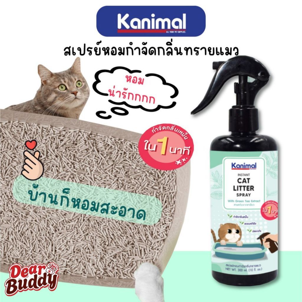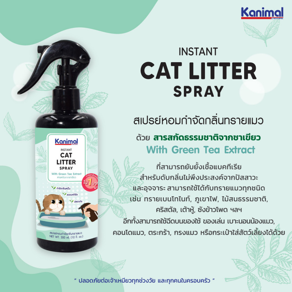 Kanimal Cat Litter Spray สเปรย์หอมกำจัดกลิ่น สเปรย์ทรายแมว สารสกัดจากชาเขียว กำจัดแบคทีเรีย สำหรับทรายแมวทุกชนิด (300 มล./ขวด)