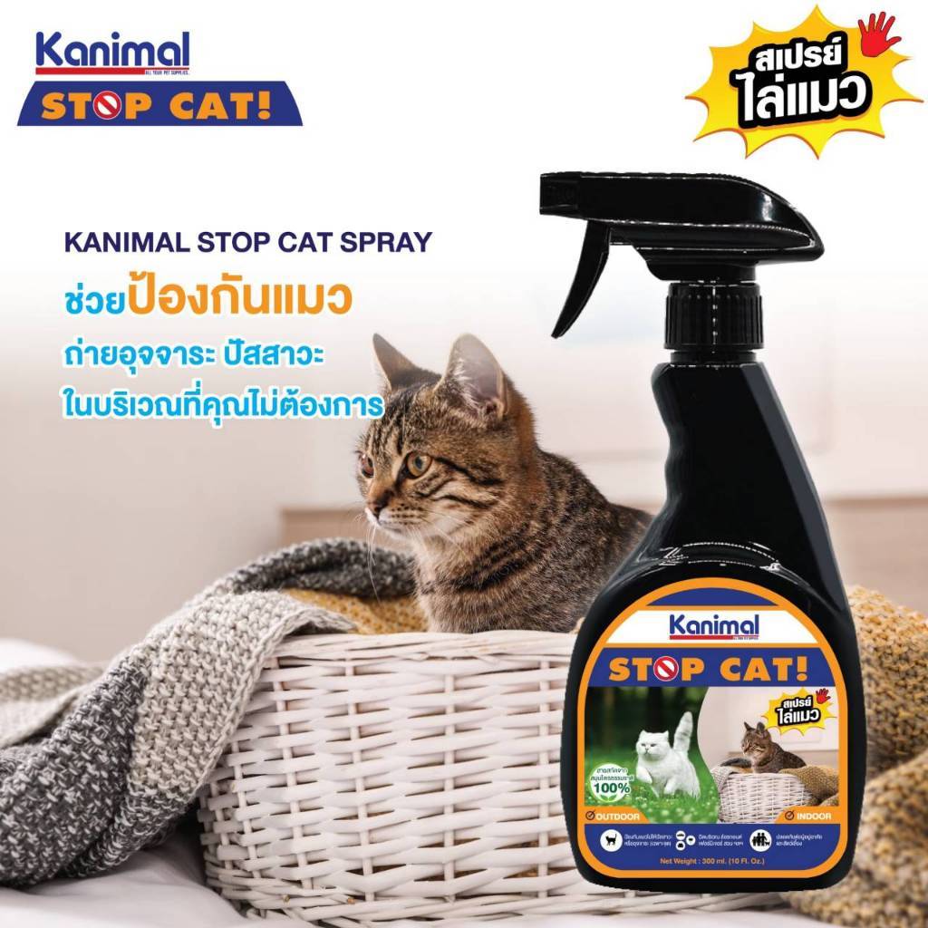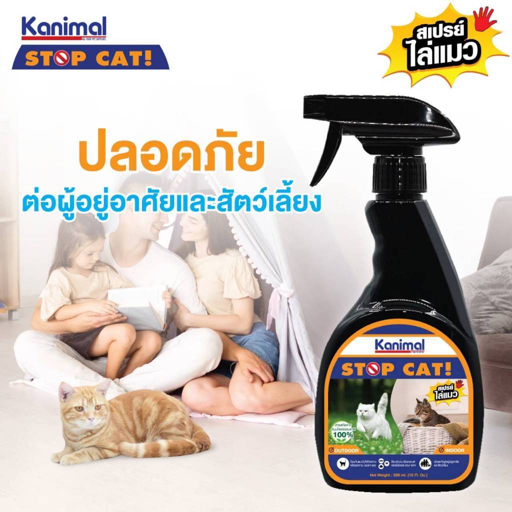 Kanimal Stop Cat Spray สเปร์ยไล่แมว ผลิตจากสมุนไพรธรรมชาติ จึงปลอดภัยต่อผู้อยู่อาศัย และสัตว์เลี้ยง เมื่อฉีดแล้วจะไม่ทิ้งกลิ่นหรือคราบรบกวนช่วยป้องกันพฤติกรรมอันไม่พึงประสงค์ เช่น ถ่ายอุจจระ ปัสสาวะในบริเวณที่คุณไม่ต้องการ ขุดสวนดอกไม้ ปัสสาวะใส่ล้อรถยนต์ ข่วนรถยนต์ ทำลายเฟอร์นิเจอร์ตัวโปรด ฯลฯ ใช้ได้ทั้งภายในและภายนอกบ้าน อีกทั้งยังช่วยป้องกันสิ่งของ หรือเครื่องใช้ภายในบ้านจากการกัดแทะของสัตว์เลี้ยง