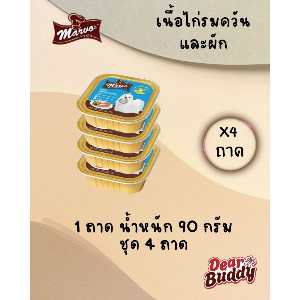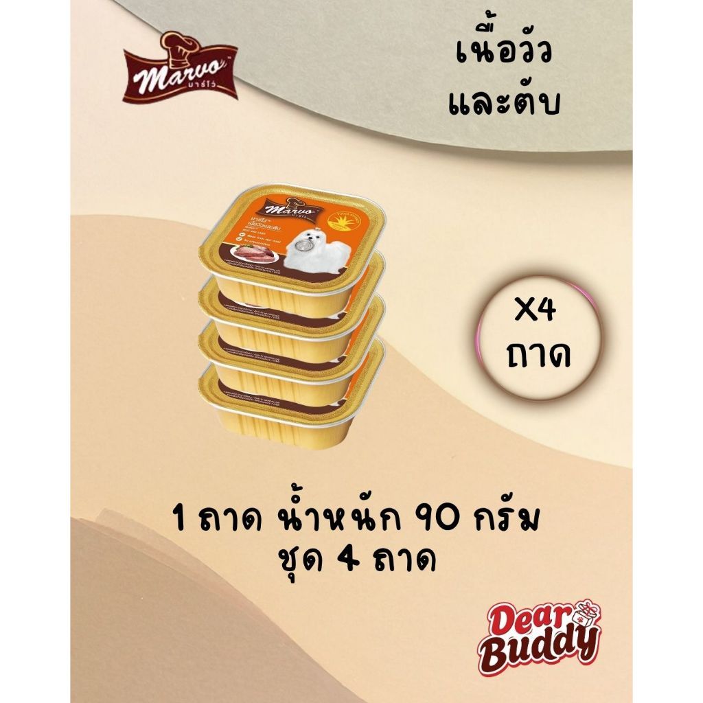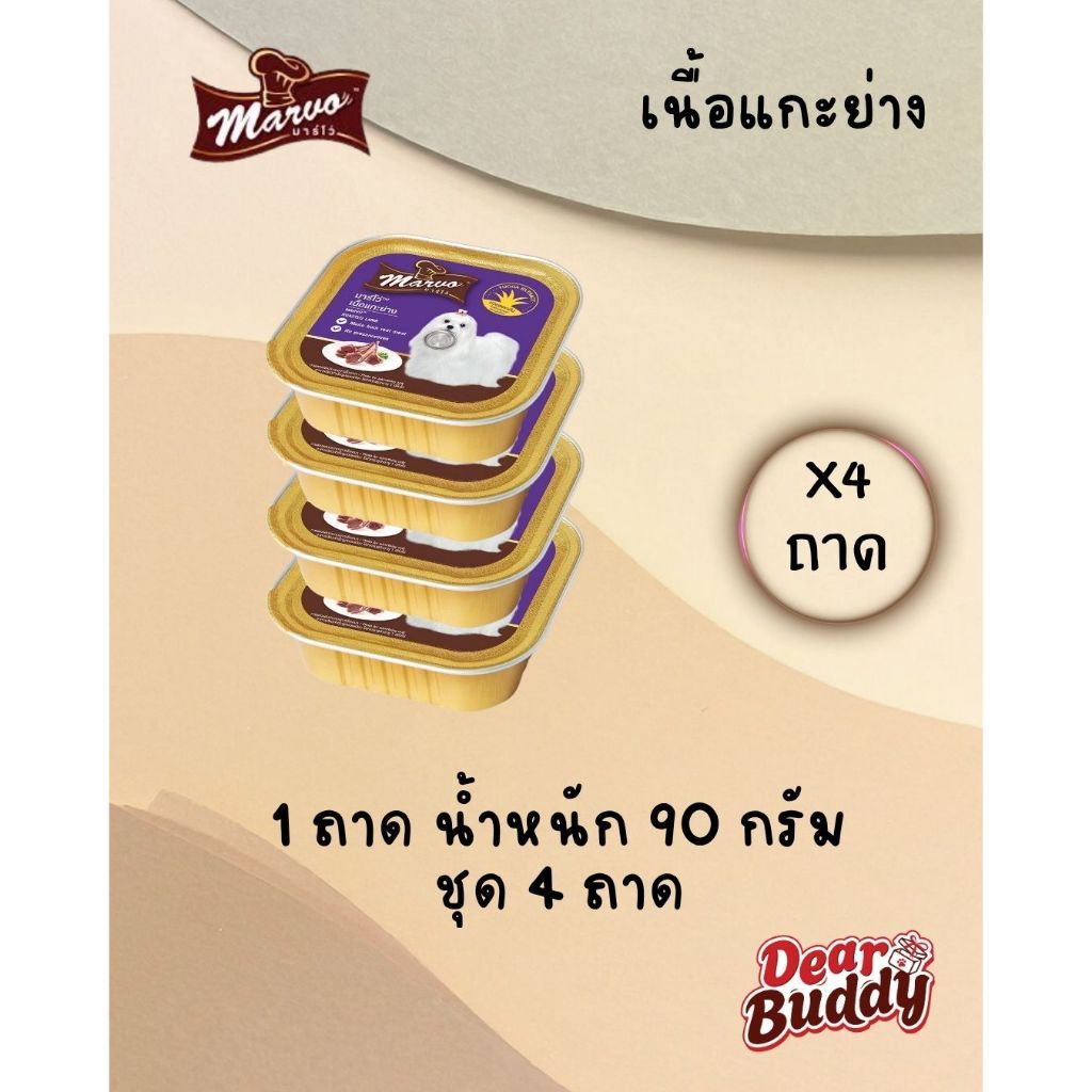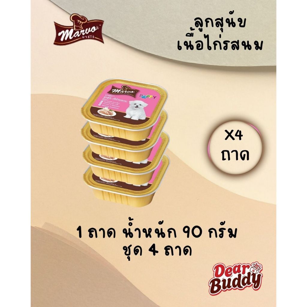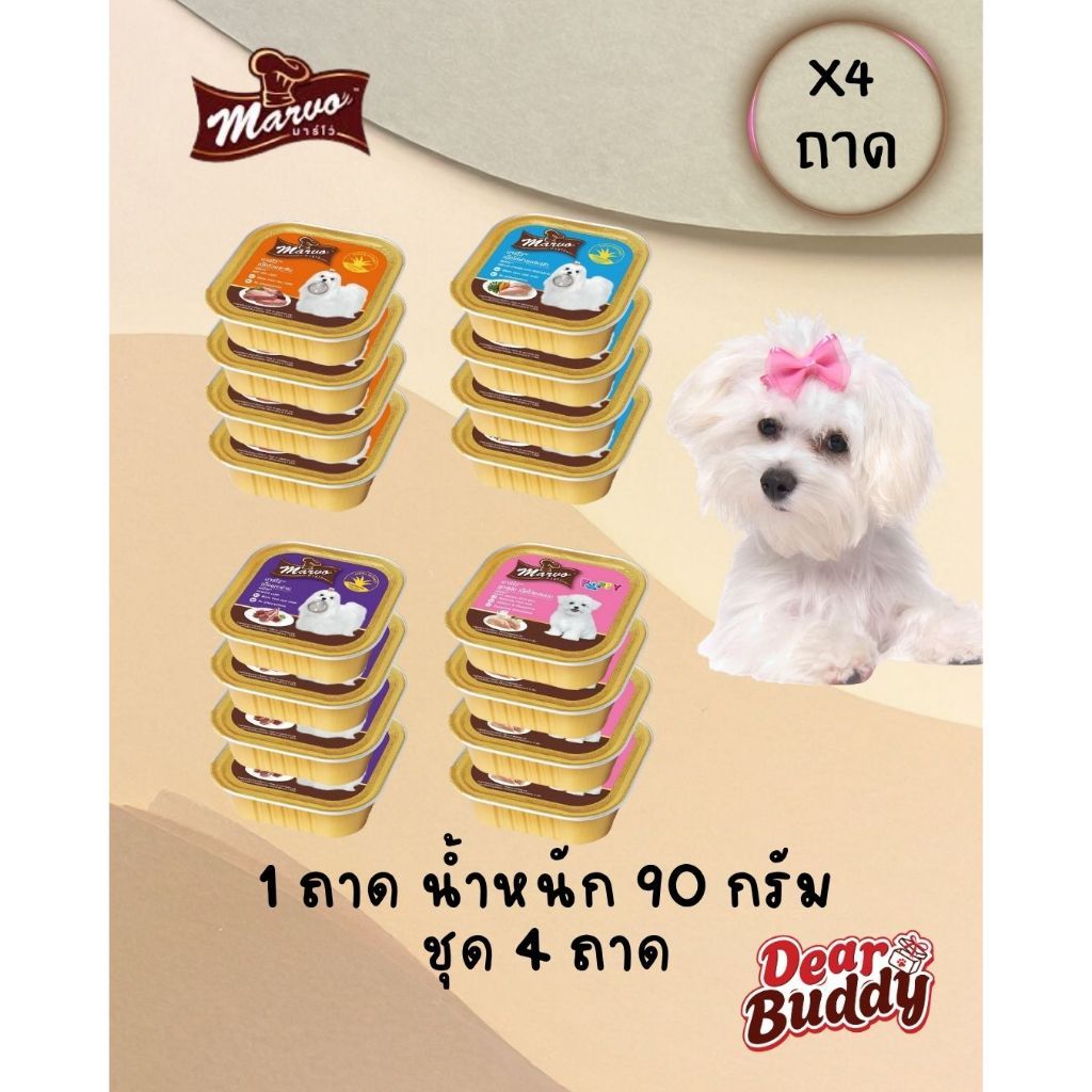 Marvo (มาร์โว่) อาหารเปียกสุนัข เนื้อแท้ แบบถาด 85g-90g สำหรับลูกสุนัขและสุนัขโต 4 ถาด