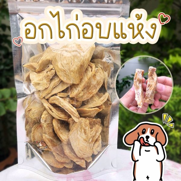 อกไก่อบแห้ง 200 กรัม ขนมสุนัข ขนมหมา ไก่อบแห้ง ไก่กรอบ ขนมหมา ขนมแมว เนื้อไก่อบแห้ง ไก่อบกรอบ ของว่างสำหรับสุนัข