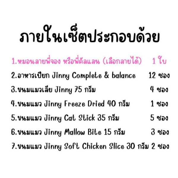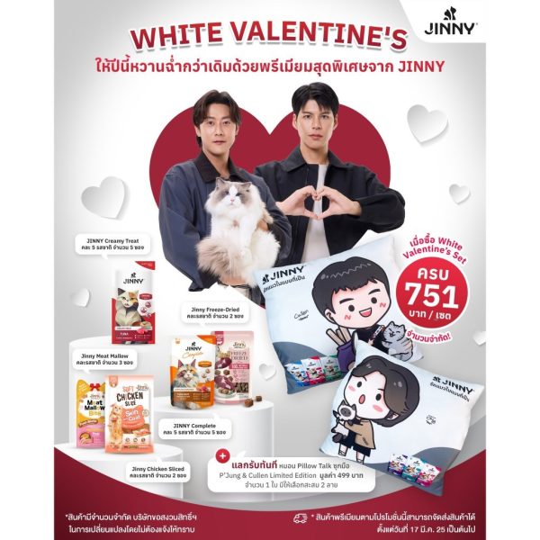 อาหารแมว Jinny ราคา 751 บาทต่อเซ็ต เซ็ต White valentines’s หมอนซุกมือลายพี่จองกับคัลแลน