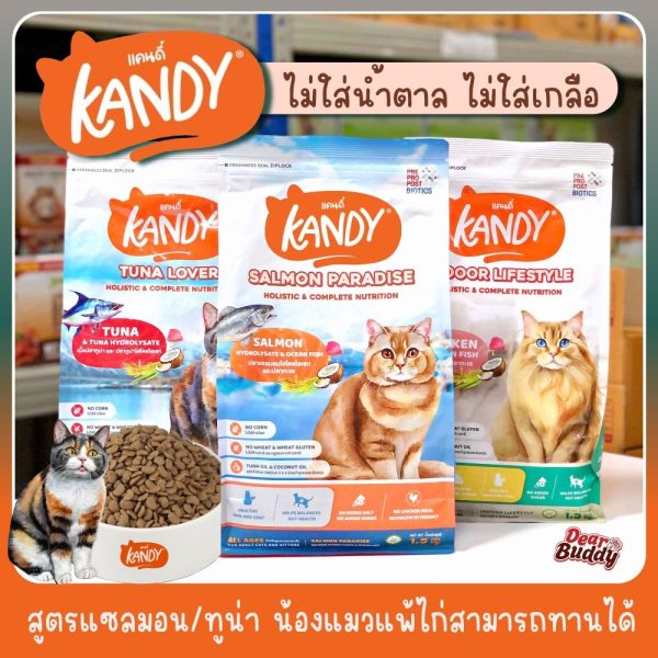 อาหารแมว Kandy Cat Food น้ำหนัก 1.5 kg และตัวอย่างสินค้า 30 กรัม ไม่เติมเกลือและน้ำตาล อาหารแมวแคนดี้