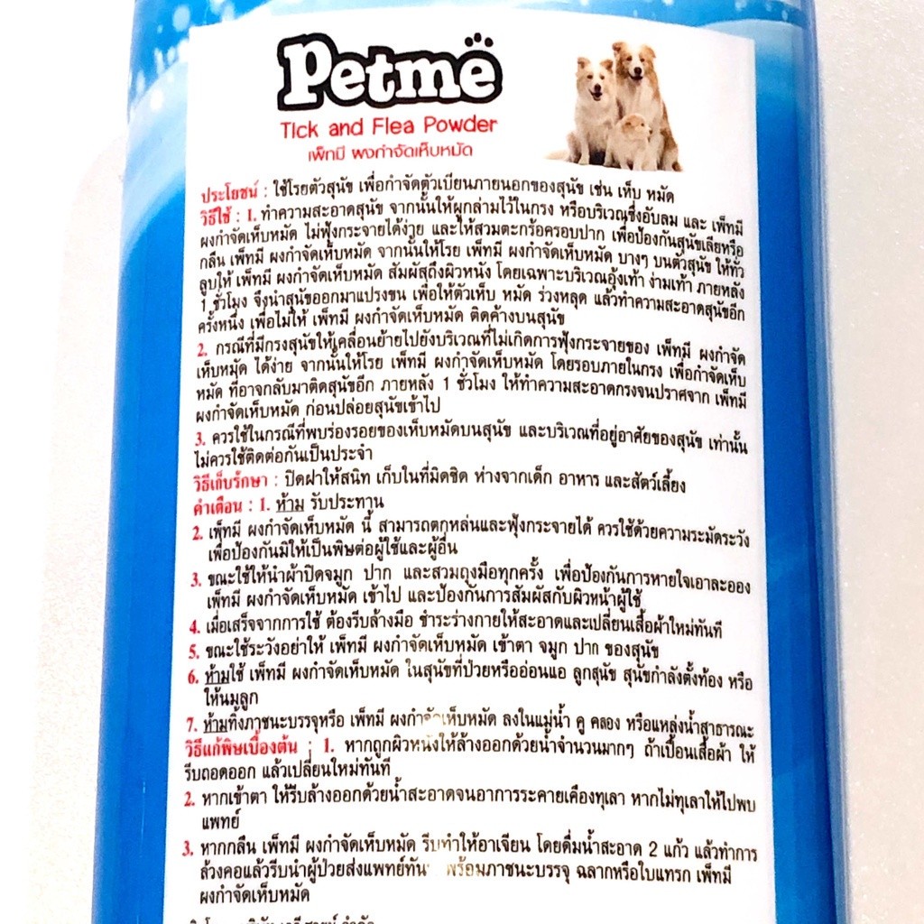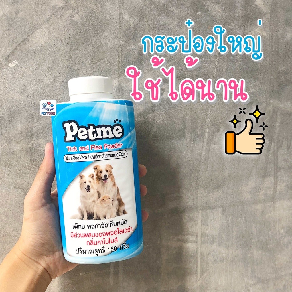 Petme แป้งโรยตัวกำจัดเห็บ กลิ่นไม่ฉุน กลิ่นคาโมไมล์ ผสมผงอโลเวร่า แป้งกำจัดเห็บหมัด แป้งกำจัดเห็บ แป้งกำจัดหมัด หมัด