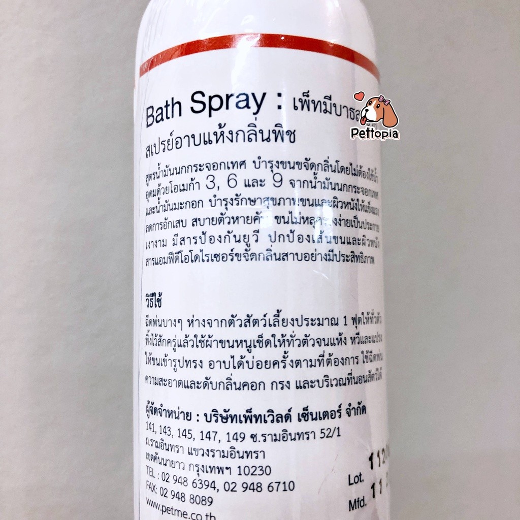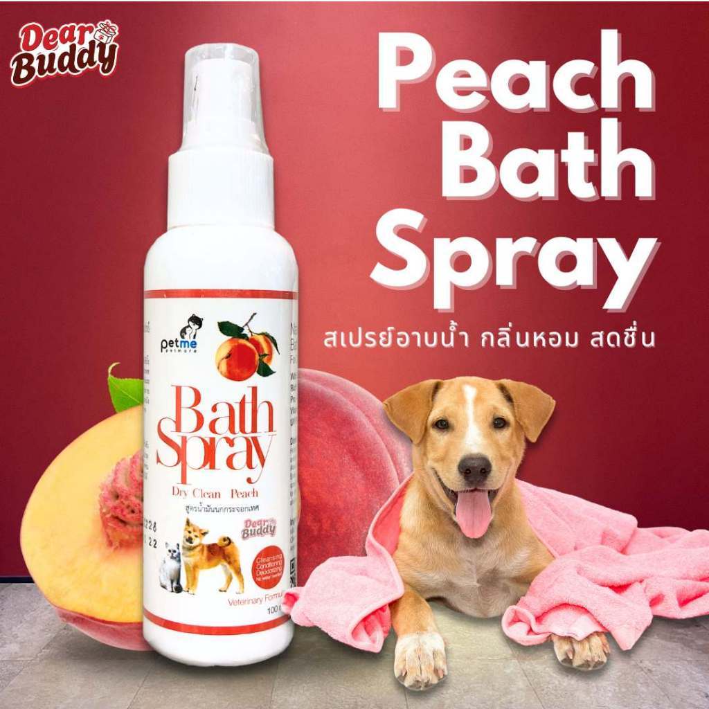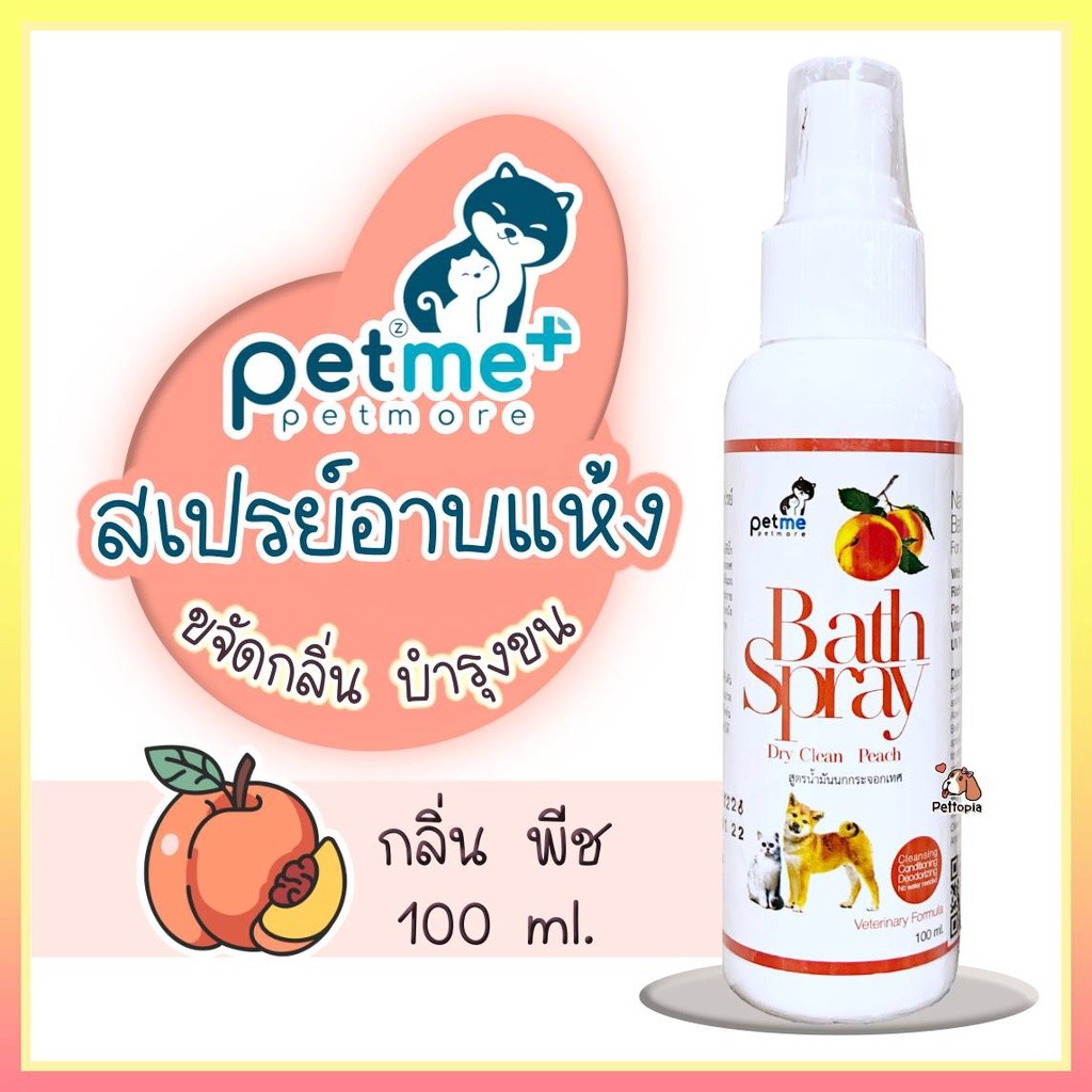 Petme bath spray กลิ่นพีช สเปรย์อาบแห้ง บำรุงขนและผิว หอม สะอาด รู้สึกสบายตัว ขนไม่ร่วงหลุดง่าย