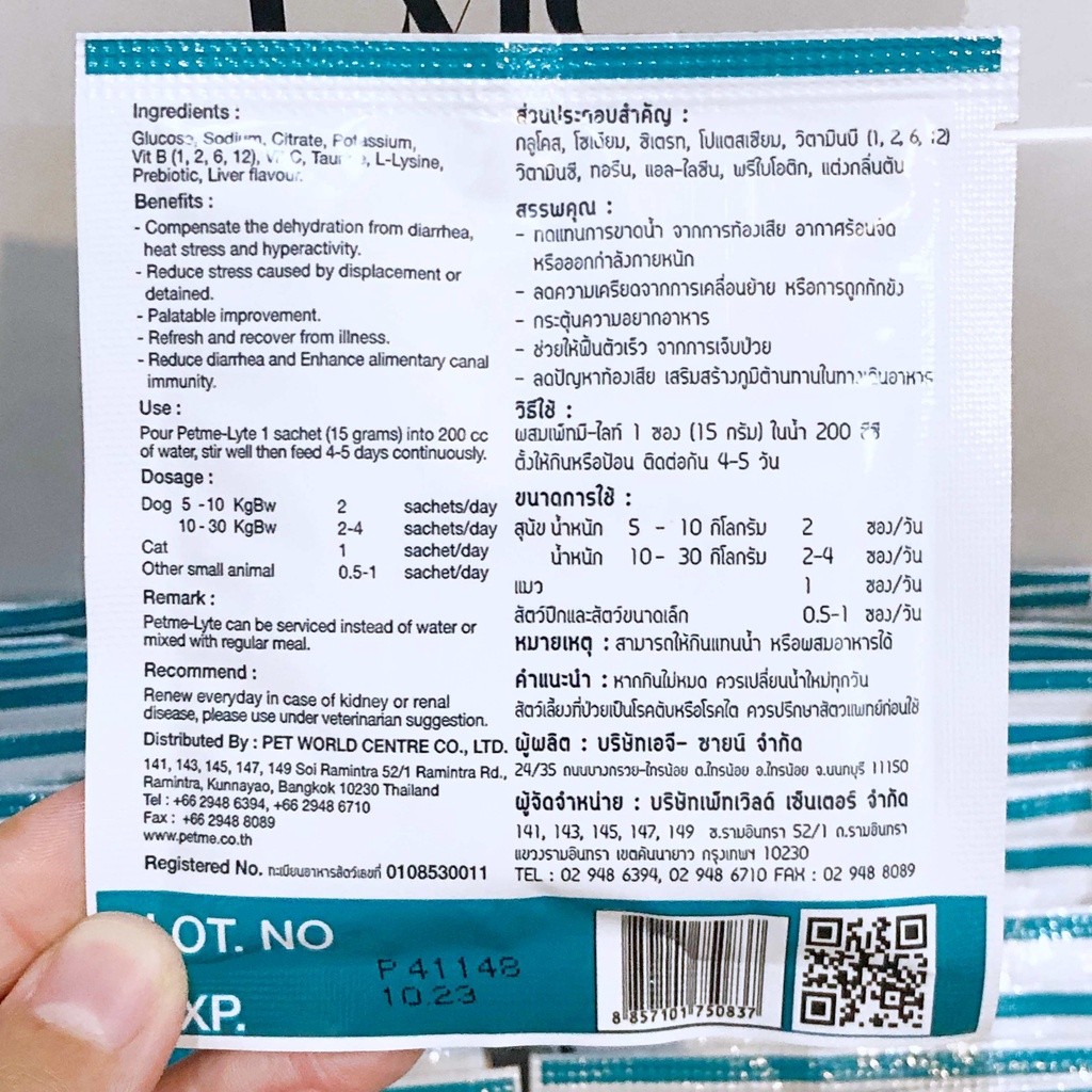 Petme lyte เกลือแร่ผสมวิตามินรสตับ ทดแทนการขาดน้ำ จากท้องเสีย อากาศร้อน ออกกำลังกาย มีพรีไบโอติก เกลือแร่แมว