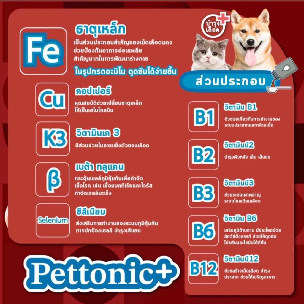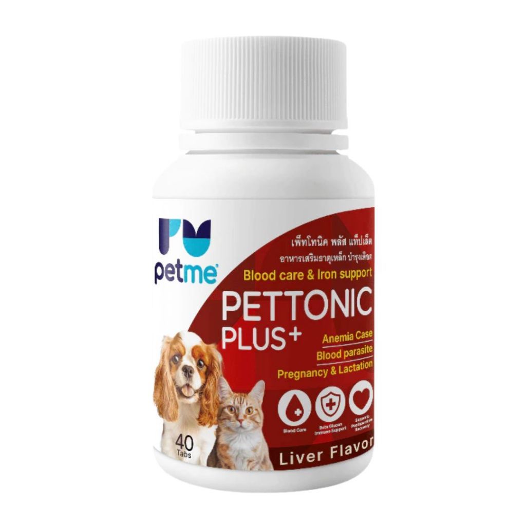 Pettonic อาหารเสริม วิตามินบำรุงเลือด ชนิดเม็ด รสตับ ทานง่าย สำหรับสุนัขทุกสายพันธุ์ (40 เม็ด/ กระปุก)