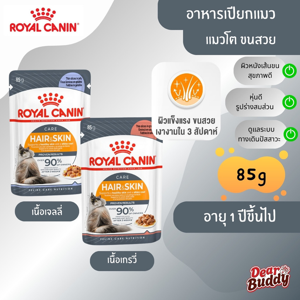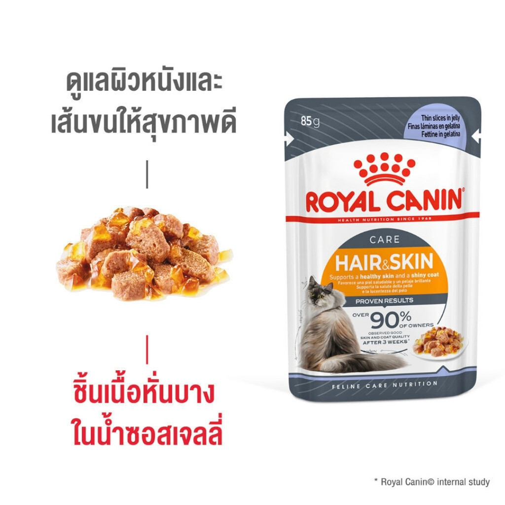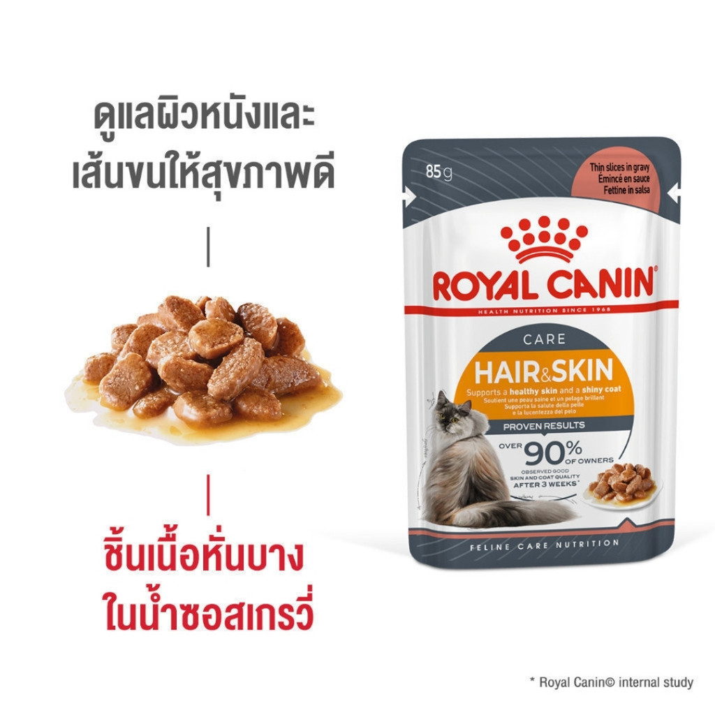 Royal Canin Hair & Skin Care (โรยัล คานิน) อาหารเปียกแบบซอง (1 ซอง) สำหรับแมวโต อายุ 1 ปีขึ้นไป สูตรดูแลสุขภาพผิวหนังและเส้นขน (Hair & Skin Care)