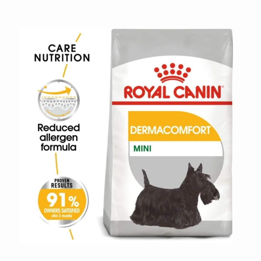 Royal Canin Mini Dermacomfort (โรยัล คานิน) อาหารเม็ดสำหรับสุนัขโตพันธุ์เล็ก อายุ 10 เดือนขึ้นไป สูตรดูแลผิวหนังและเส้นขน (สำหรับผิวแพ้ง่าย/ระคายเคืองง่าย)