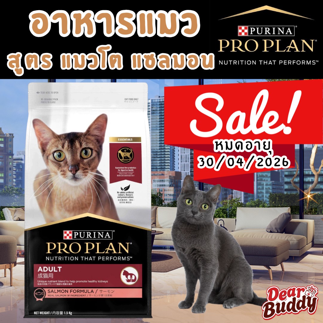 (ลดราคา 50% Short Expire 2026-04-30) อาหารแมว Purina PRO PLAN® 1.5 กก. สูตร แมวโต สูตรปลาแซลมอน Adult Salmon