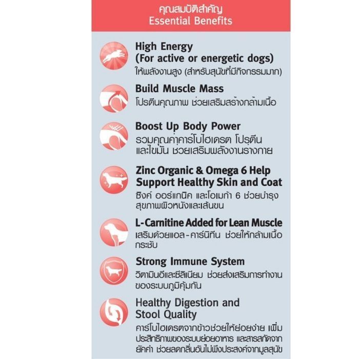 ⚡️ พลังงานเต็มพิกัด: ด้วยโปรตีนและไขมันที่คัดสรรมาอย่างดี เหมาะสำหรับสุนัขที่ชอบวิ่งเล่นและออกกำลังกาย